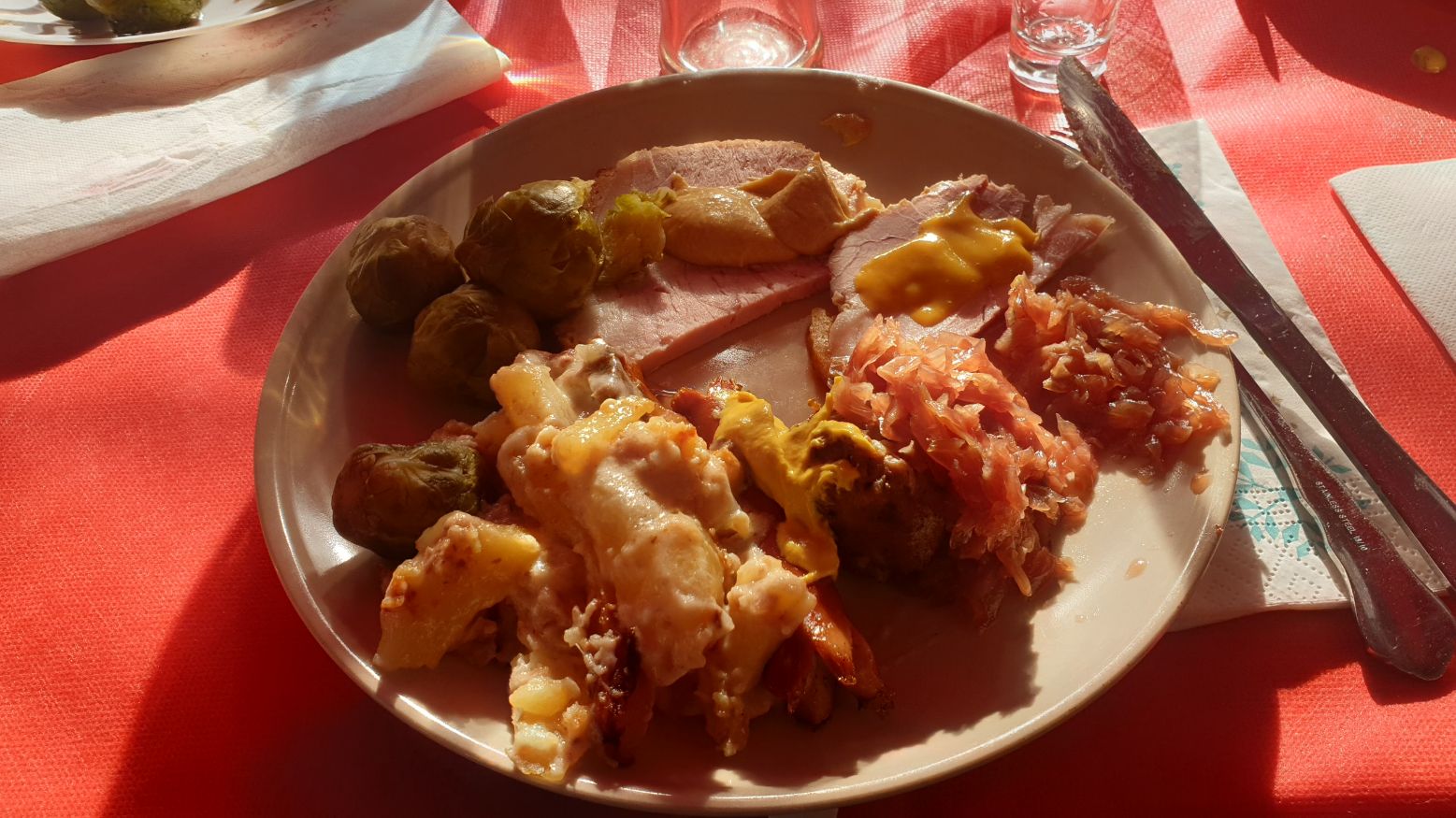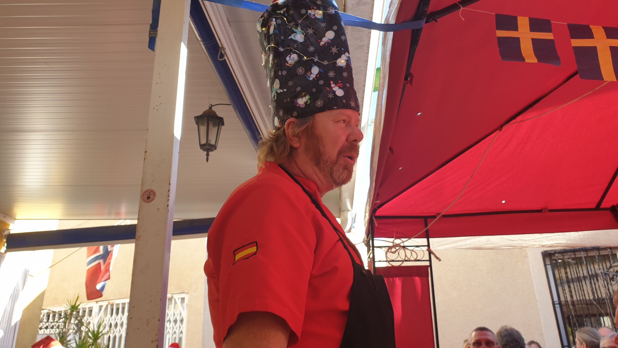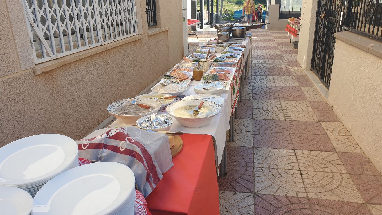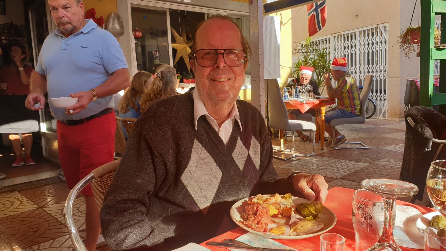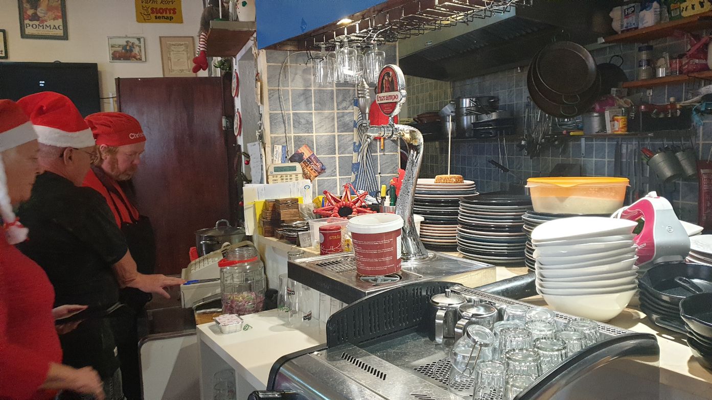 Julmåltiden hos Micke med allt i 24-gradig utomhusmiljö och klarblå himmel