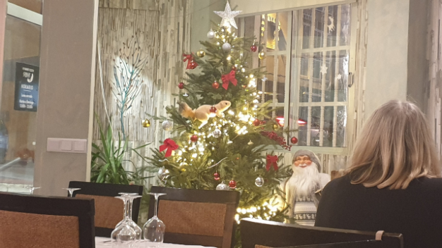 På väg till julmiddagen – blå himmel 17 grader