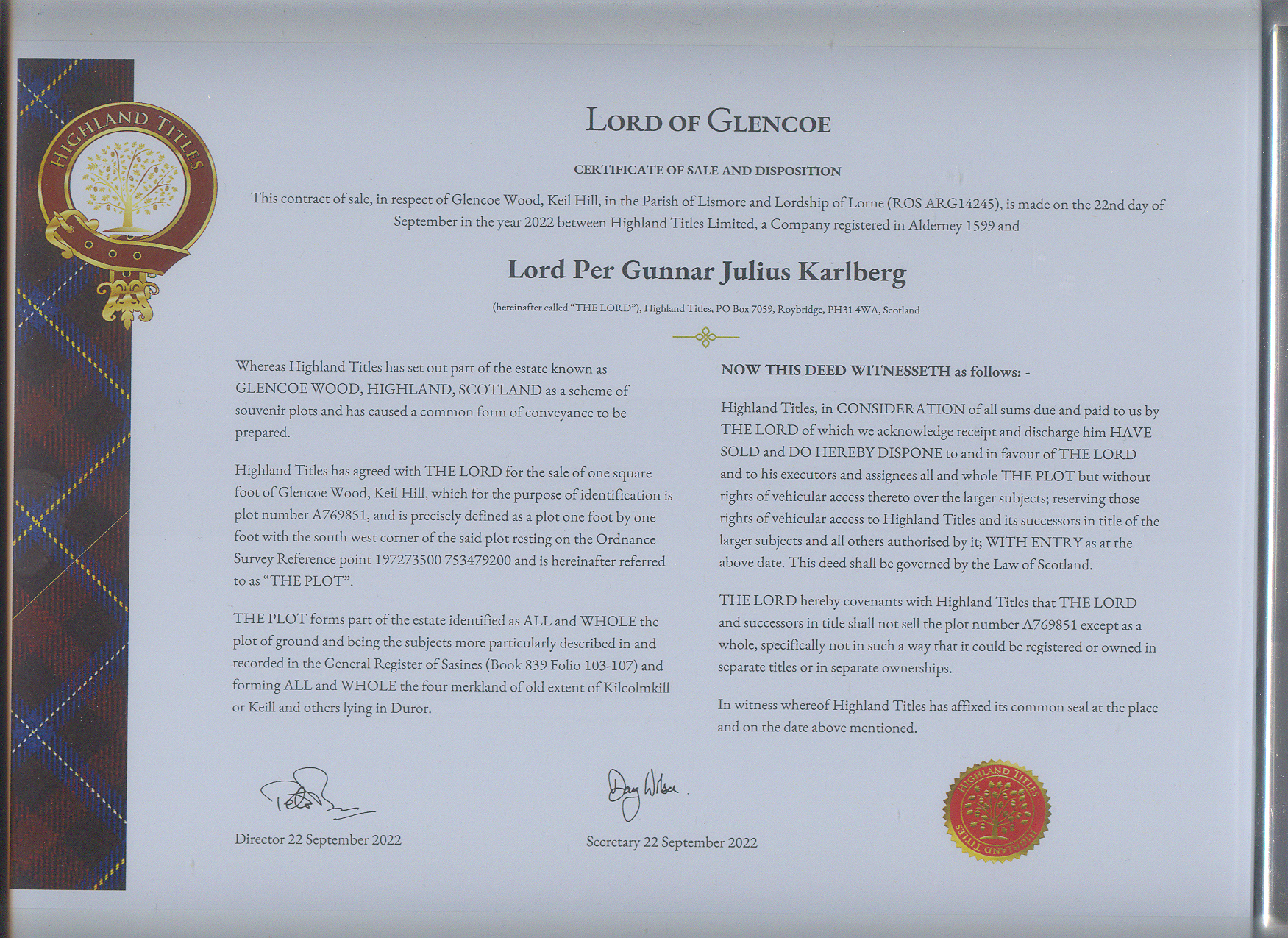 • Nyutnämnd Lord of Glencoe